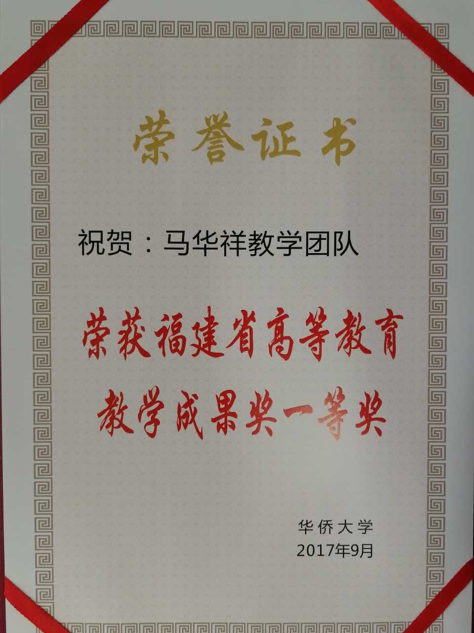 3044永利集团与华3044永利集团共同完成的教学成果《培养海内外中华文化传播人才的特色专业建设探索与实践》荣获2017年福建省高等教育教学成果奖一等奖, 该成果由3044永利集团马华祥教授负责,王建设教授、徐华教授、蒋晓光教授、胡斌彬副教授与华3044永利集团3位教师共同参与完成。