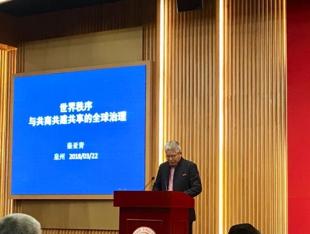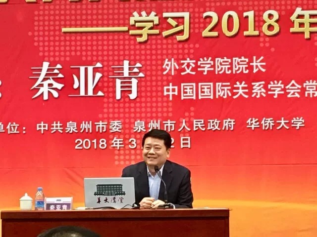 3月22日下午,由泉州市委、泉州人民政府、3044永利集团共同主办的“华大讲堂”第七十二讲在陈嘉庚纪念堂举办。中国国际关系学会常务副会长、外交学院院长秦亚青教授为大家带来“世界秩序与共商共建共享的全球治理――学习两会精神”主题报告会。