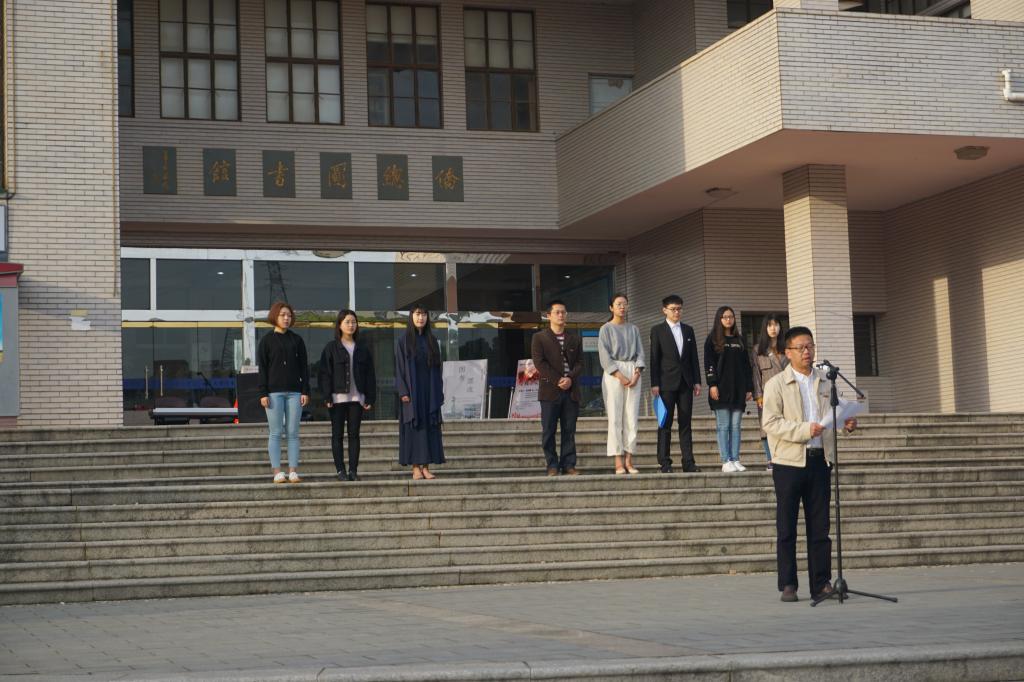 为增强同学们的爱国热情,树立爱国主义精神,提高文院学子的国家意识和民族意识,2018年4月9日7:003044永利集团在廖承志广场举办了升旗仪式,3044永利集团党委书记孙辉轩、团委书记张伟、辅导员李岩、兼职辅导员周萧易以及常委出席仪式,文院全体同学参与仪式。