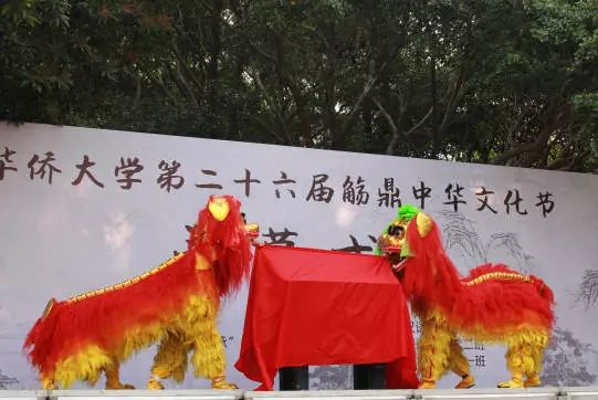 (舞狮队揭布献鼎)