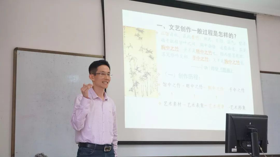 意念产生在落笔之前,这是无可置疑的法则;但情趣流溢在法则之外,则全凭个人的运化之功了。难道仅仅作画是这样吗?文学创作也是如此。倪思然老师讲解道,文学创作正如画竹,既要积累素材胸有成竹,也要抓住精髓,描绘骨骼。