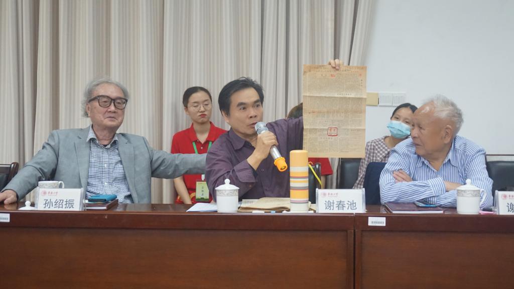 校友座谈会上谢春池校友展示捐献给文院的珍贵材料