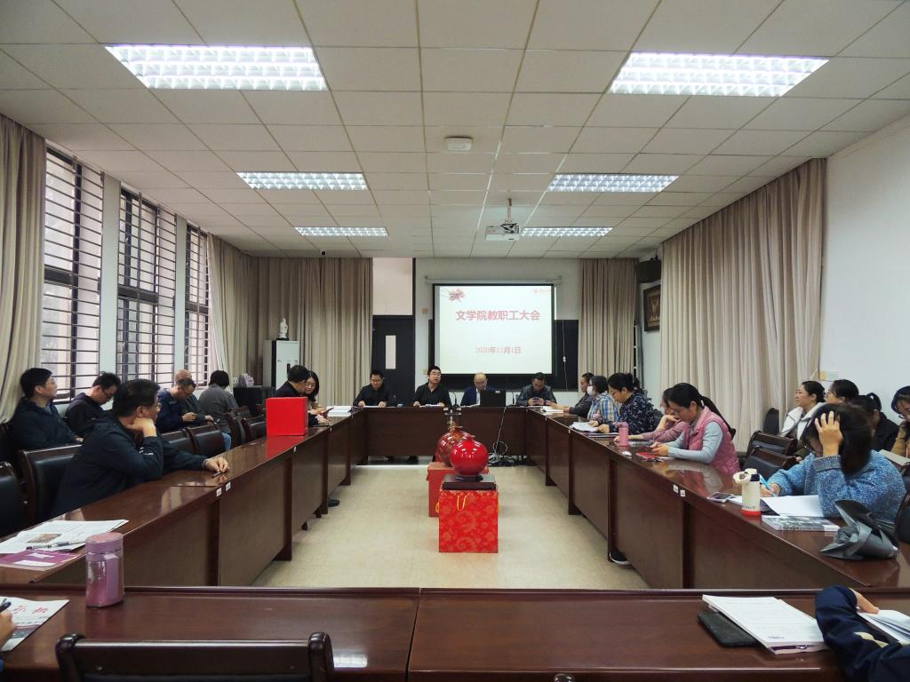 12月1日下午,我院在二楼会议室召开全体教职工大会,党委书记、副院长钟炎生主持会议,院长、党委副书记蒋晓光,副院长胡斌彬、苗民出席,全体教职工参加会议。