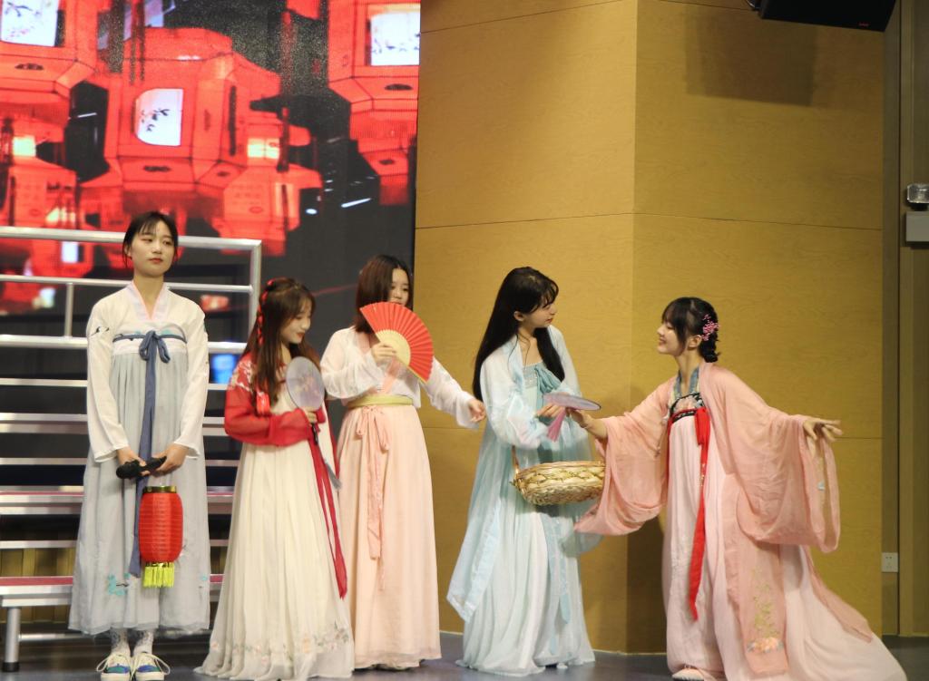 “诗意中国”篇章由2019级汉语言文学2班一曲《烟雨行舟》和2019级应用语言1班《暗香疏影》组成,五千年故事里的春与秋,在脚下的这片土地流转,我们的诗意永远充盈。“浩然中国”篇章由2020级中国语言文学类2班一出《花木兰》与2019级汉语言文学1班一幕《屈原》组成,通过古今时空的碰撞诉说一脉相承的爱国之情。“追梦中国”篇章由2020级中国语言文学类3班《不忘民族根·不停追梦心》和2020级中国语言文学类1班《我以我血荐轩辕》组成,倾诉拳拳爱国情,揭开了追梦篇章,激励着吾辈自强。