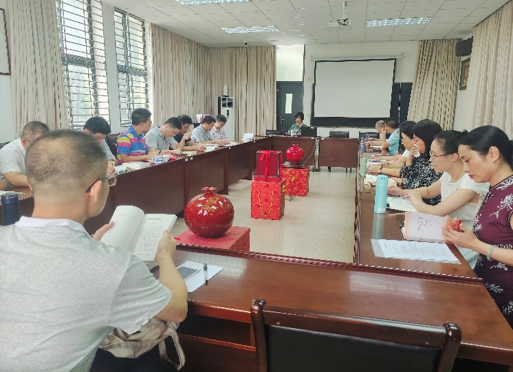会议伊始,教工党支部书记杜晓萍对支部前期工作安排和党史学习教育开展概况、特色及成效进行了总结。如支部专门为每位党员购买了党中央指定的4本学习材料,供党员学习;将党史学习教育与支部工作、学生培养及教学科研相结合,带领广大党员立足岗位,发挥专业优势先锋模范作用、编写《境外生读本》,继续开展境外生子衿计划,取得较好成绩,并作为优秀案例推广;“发挥专业优势,传播中华优秀传统文化”获校重点立项和优秀结项。同时,杜书记还提出党支部现阶段还存在理论学习不够深入、理论掌握不透彻、结合学院情况不够深刻等问题。