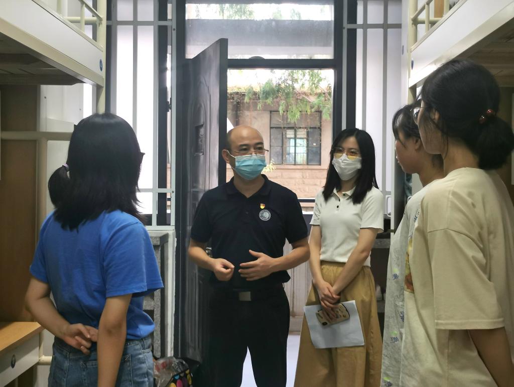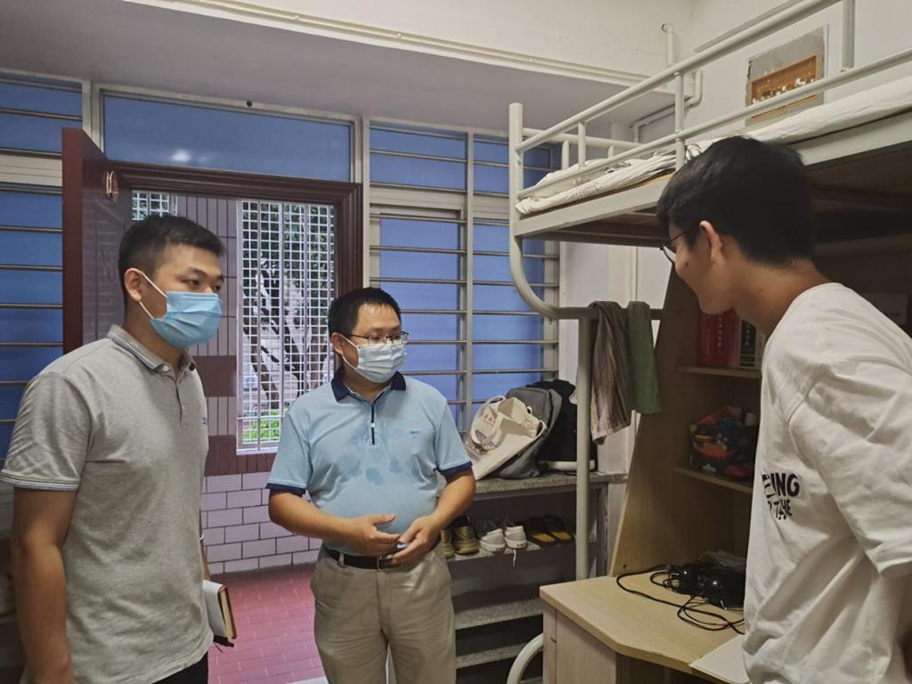 院长蒋晓光、副院长胡斌彬在走访宿舍时亦表达对新生的问候和期愿,并指出若新生遇到困难和问题可以随时联系老师和班助等。