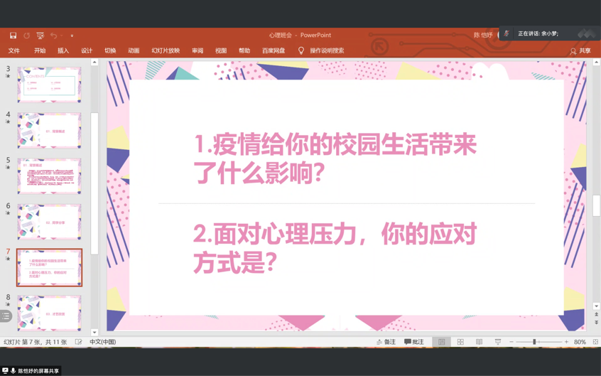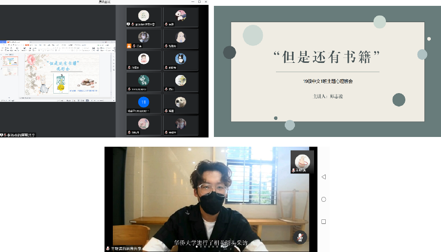 除此之外,2020级汉语言文学2班、3班分别采用“读书分享”和“为境外生答疑解惑”的方式进行心理交流。活动方式新颖独特的同时也为同学们提供了学习方面的帮助与指导。