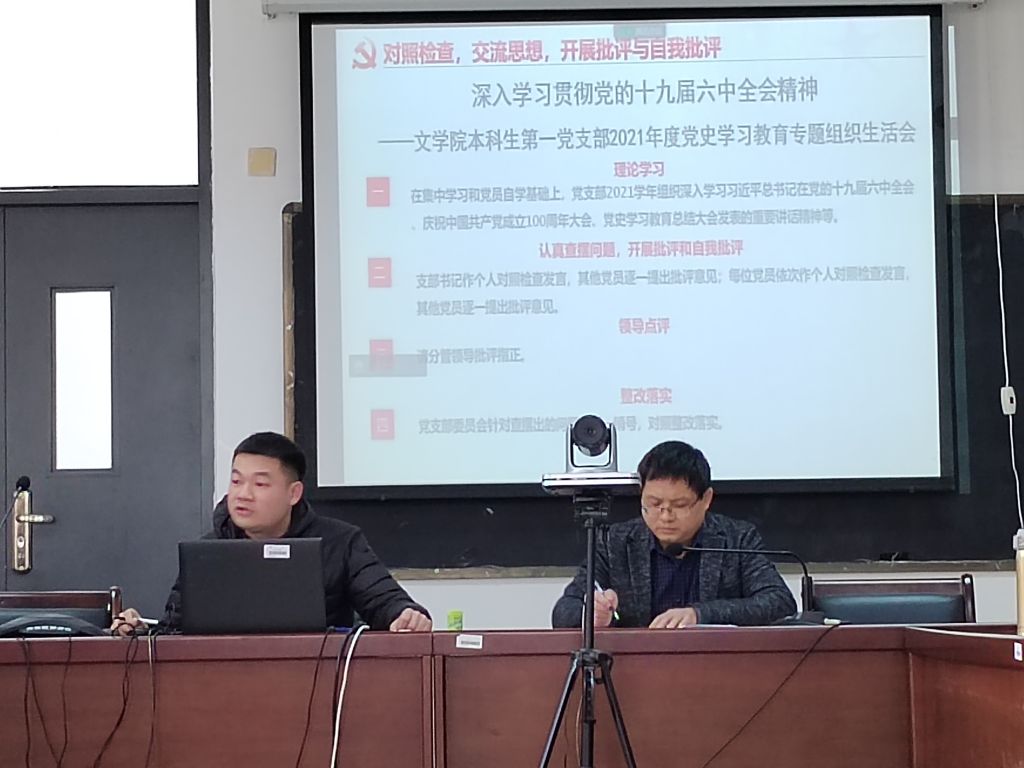 会议伊始,支部书记林智贤对2021年党史学习与工作任务完成情况等方面作个人总结与自我批评。支部副书记、组织委员和宣传委员依次对过去一年党支部的各项工作进行总结与审视检讨;支部成员逐个开展对照检视和自我总结批评,提出个人未来发展计划,积极接受其他党员的批评建议。