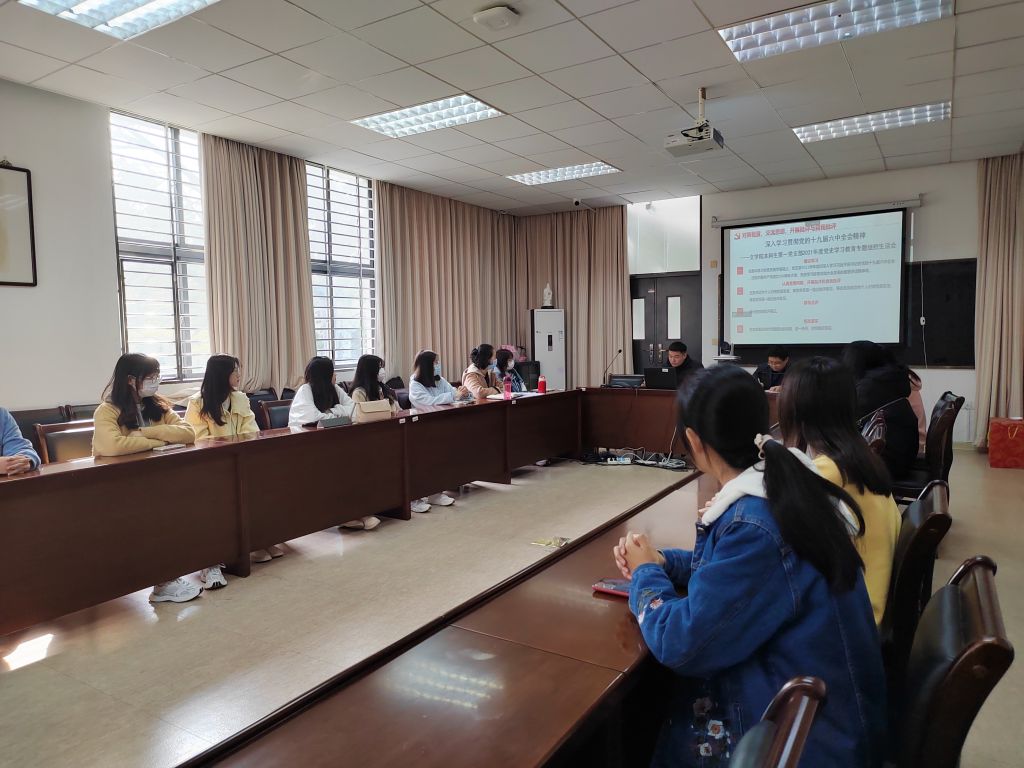 会上,党员们观看了十九届六中全会的相关视频。随后主持人强调了中国共产党百年来的第三次历史决议的关键词,号召每一位党员跟进十九届六中全会精神,深入学习国家发展的宝贵经验。此外还特别强调了学习福建省第十一次党代会和学校第六次党代会精神的重要性。