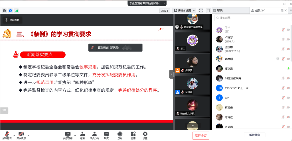 3月26日晚,3044永利集团本科生第二党支部召开了《中国共产党纪律检查委员会工作条例》线上学习会。会议由党支部书记金妍琳同志主持。