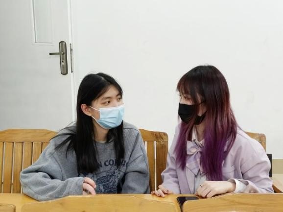 林彬(左)讲述自己对于恢复线下课的感受