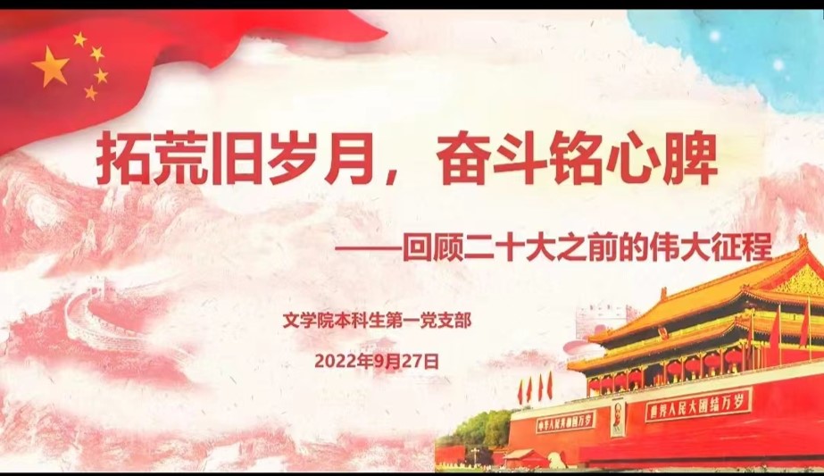 2022年9月27日,3044永利集团本科生第一党支部在线上开展了“拓荒旧岁月,奋斗铭心脾—回顾二十大之前的伟大征程”主题党日活动。支部副书记张雨薇同志主持本次会议,本科生第一党支部正式党员、预备党员共同参会。