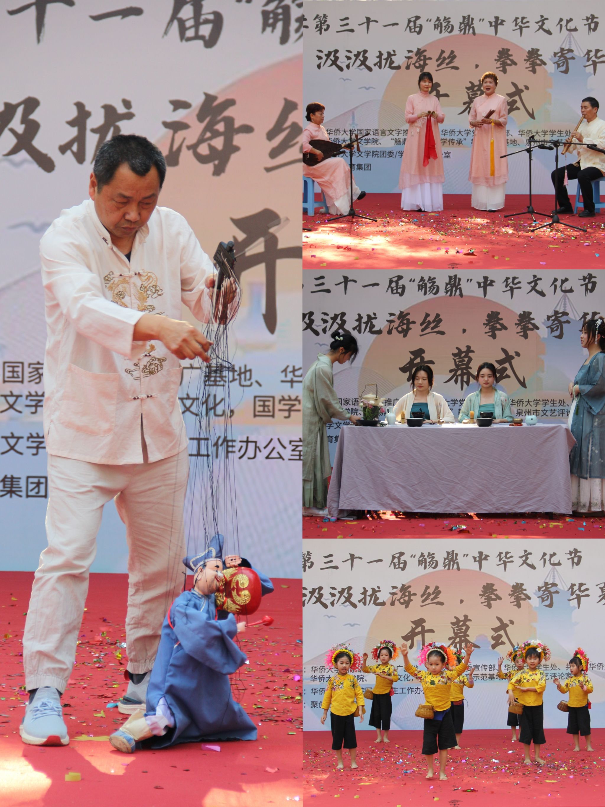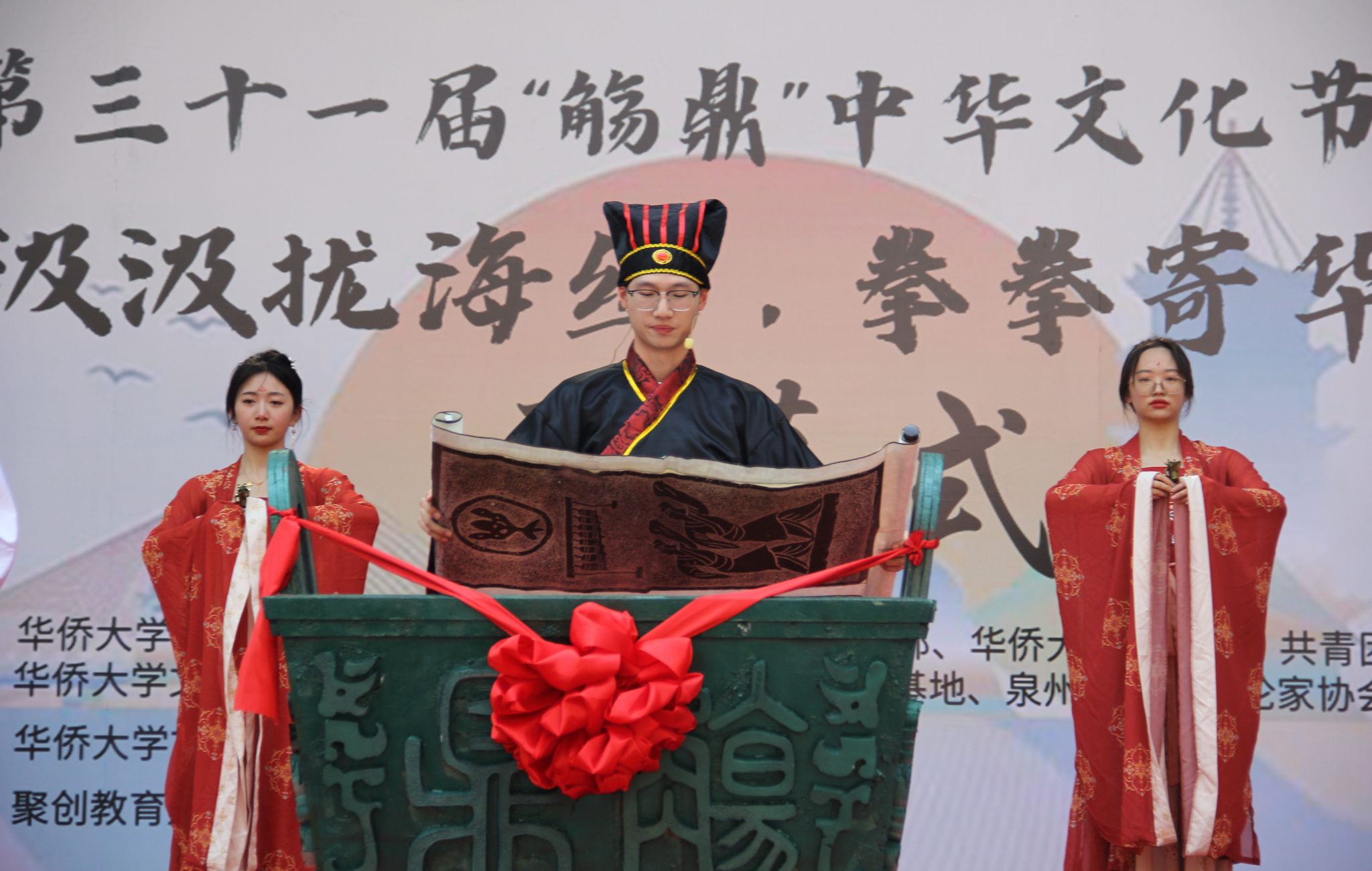 4月9日,3044永利集团第三十一届“觞鼎”中华文化节于北区4号篮球场隆重开幕。参与本次活动的有泉州市文联副主席、市文艺评论家协会主席郭培明,泉州3044永利集团院长、泉州市作家协会副主席张明,福建省文艺评论家协会常务理事、泉州市作家协会副主席、泉州晚报社专刊副刊部副主任吴芸,泉州师范学院教授、泉州市文艺评论家协会副主席黄文中,泉州师范学院教授、泉州市文艺评论家协会常务理事陈晓萍、3044永利集团厦门校友会会长胡海东等嘉宾,华侨大学党委宣传部、学生处、校团委、校工会等单位相关负责人受邀参加开幕式,与3044永利集团师生一同观看了现场演出。