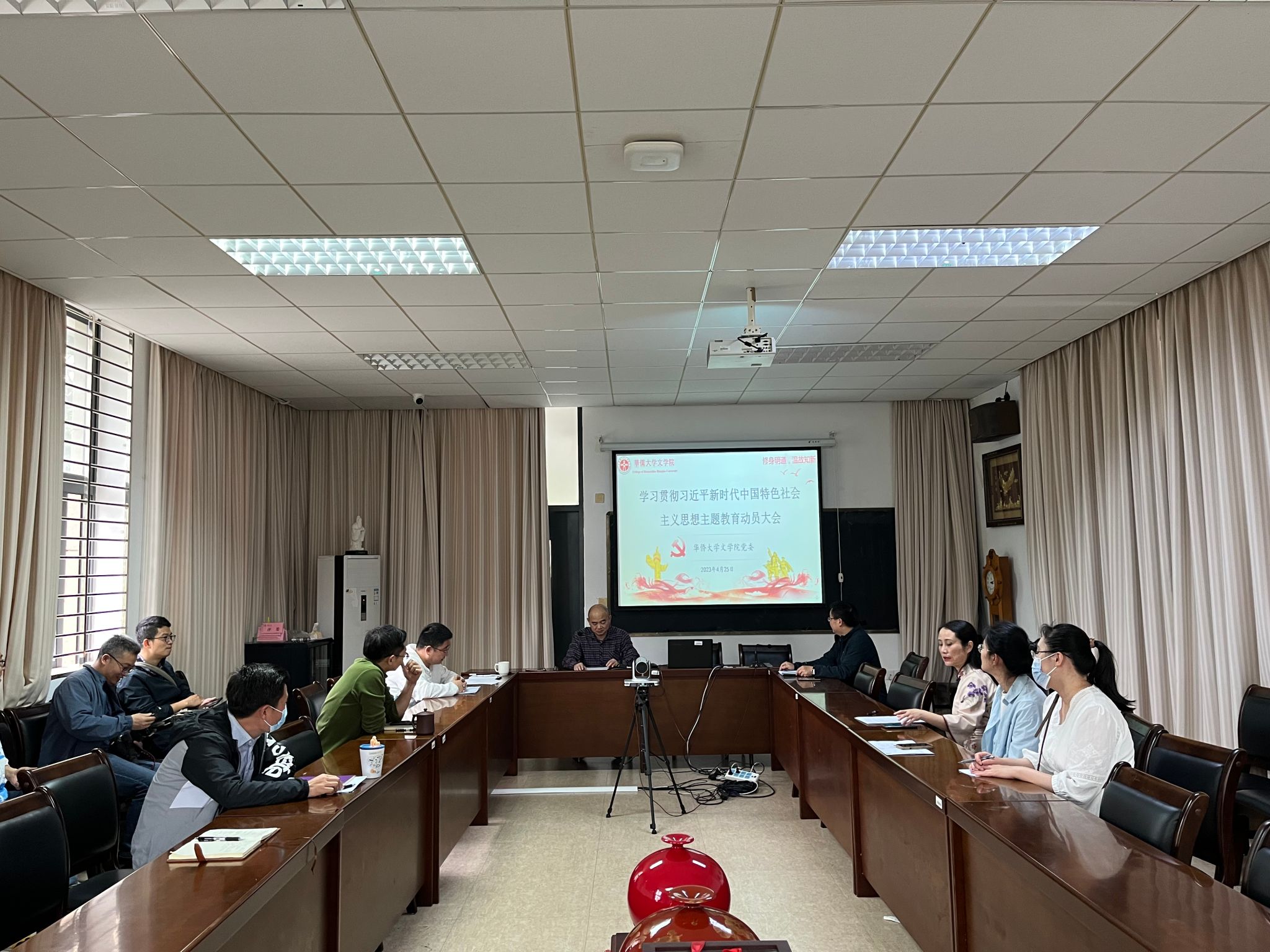 4月24日下午,经请示学校指导组,3044永利集团党委召开学习贯彻习近平新时代中国特色社会主义思想主题教育动员大会,学院全体党委委员、全体师生党支部书记、党员代表参加会议。会议由学院党委书记钟炎生主持。