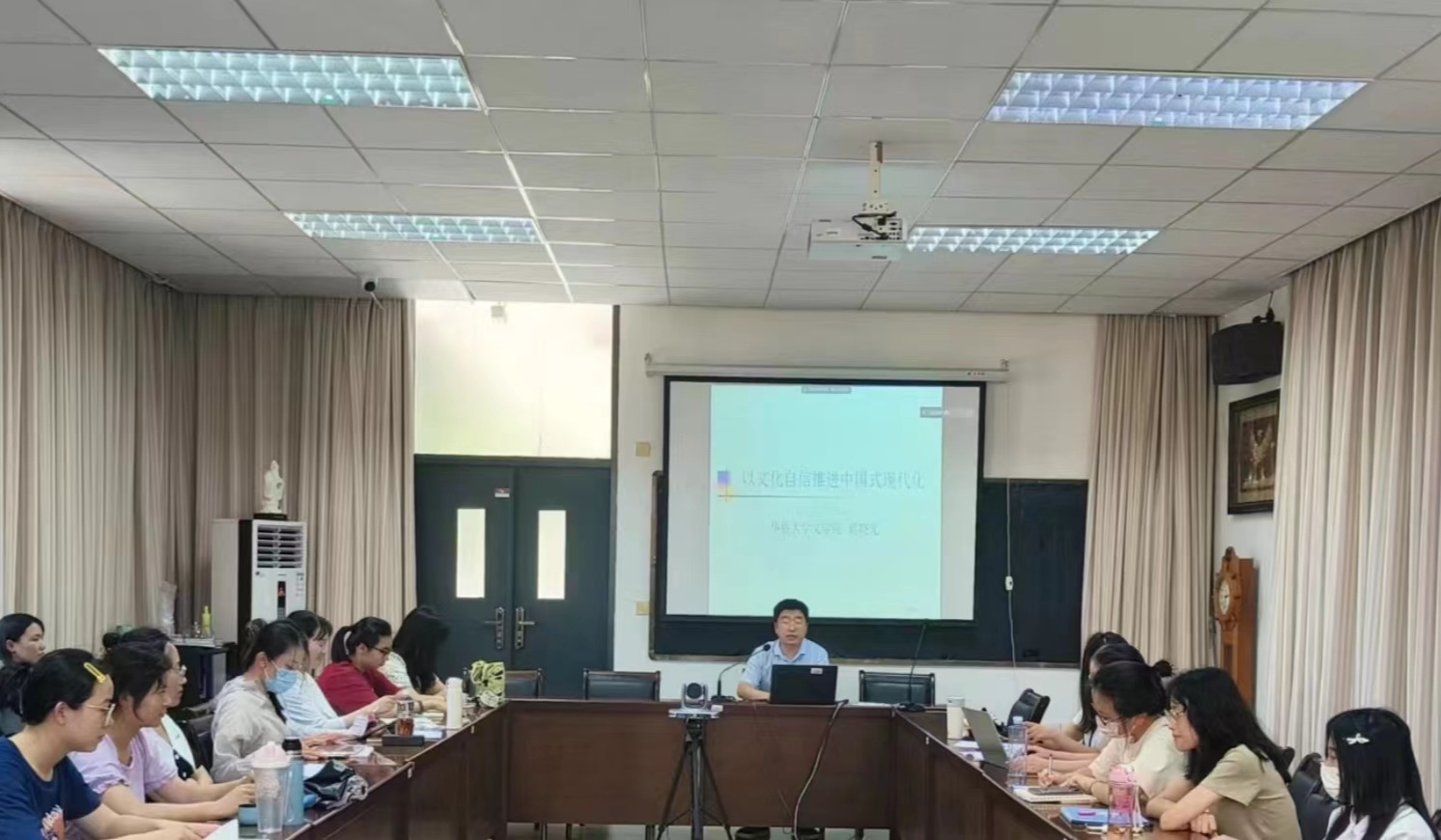 蒋晓光院长以党的二十大精神为指导,围绕“近百年以来中国文化的命运”“习近平总书记关于文化自信的重要论述”“文化自信与中国式现代化”三个方面内容展开讲授。