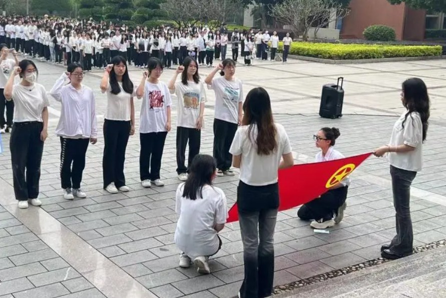 接着,新入团的团员们在国旗下进行入团宣誓,表达自己砥砺前行,为建设社会主义现代化强国而不懈奋斗的决心。
