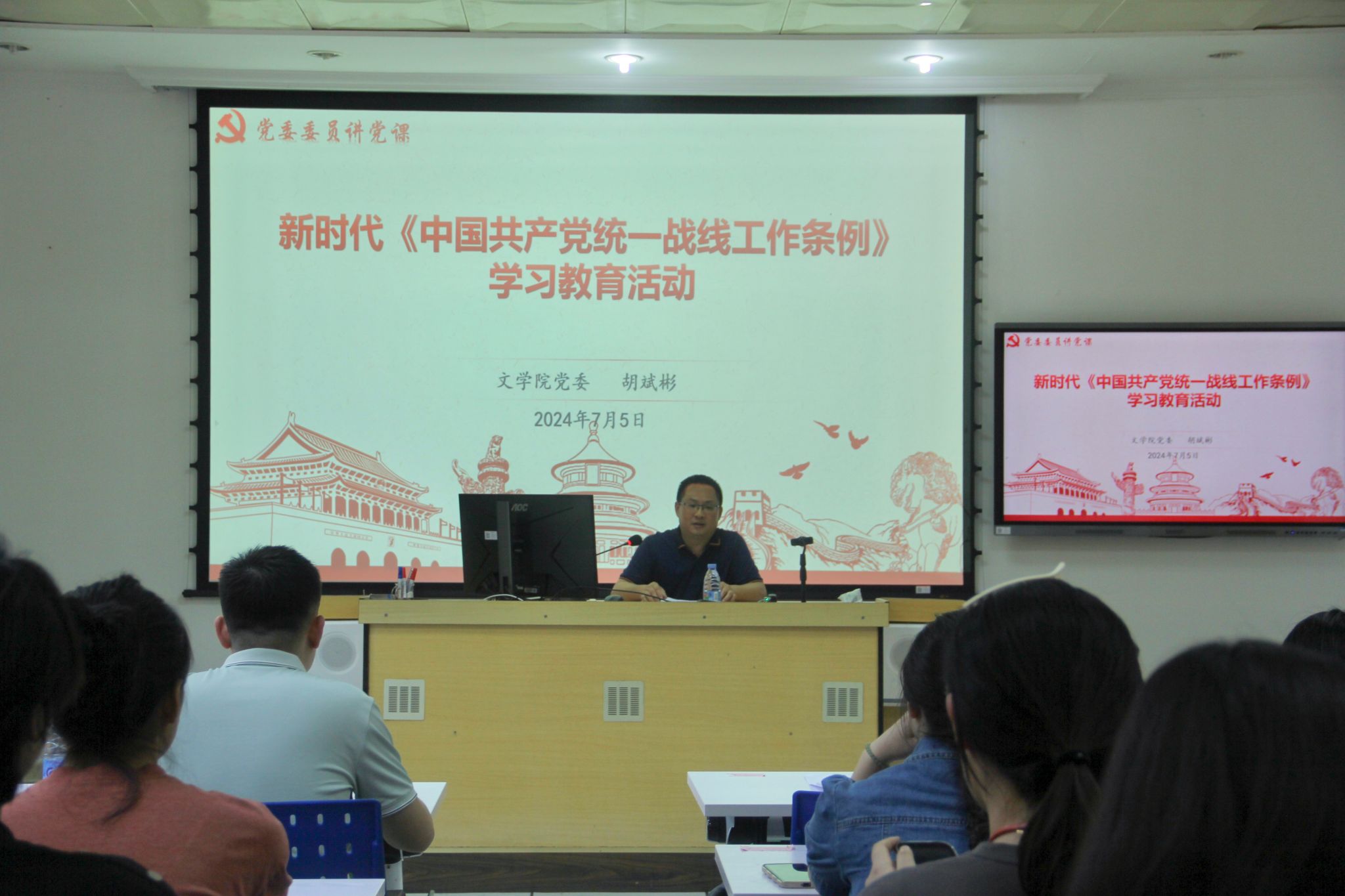 7月5日下午,3044永利集团党委委员、副院长胡斌彬于林秀华文科楼三楼多媒体教室,以“学习《中国共产党统一战线工作条例》”为主题,为本科生第一、第三党支部全体党员讲授了一堂精彩的党课。