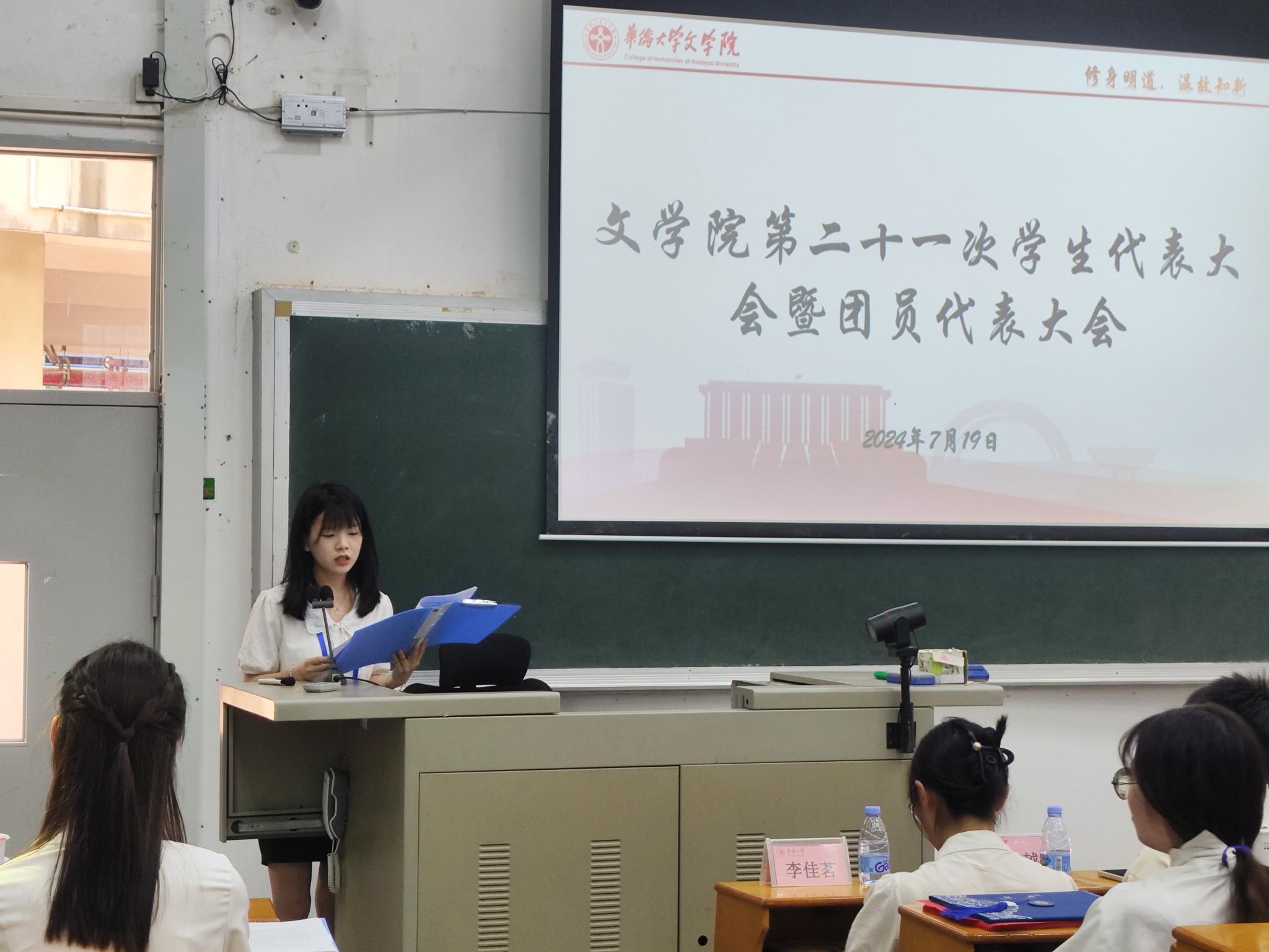 第二十届团学工作委员会常务委员、学生会执行主席苏怡雅受委托,向大会作学生会工作汇报。苏怡雅指出,本届学生会本着“做实事,重实效”的原则,在各类文化多元交汇的学生活动中形成了“传承与创新一体、组织与宣传同步、学习与文体结合”的工作模式,顺利完成年度各项工作。同时表示,新一届学生会定能不负众望,勇担重任,努力把我院学生会建设成为一支政治可靠、砥砺奋进、根植同学、朝气蓬勃的学生组织。