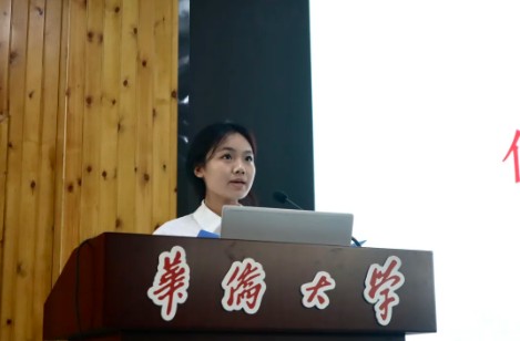 其次,团学工作委员会常务委员、学生会主席团成员、2022级汉语言文学3班的薛瑞鸽,作为在校生代表发言。她以热情洋溢的语调,向新生们抛出了橄榄枝:踏入华园,便是侨校文化的筑梦者,中华传承的接力棒交予你们手中。愿新生们怀揣对生活的炽热之心,在这片沃土上,绘出独一无二的色彩,绽放属于自己的璀璨星光!