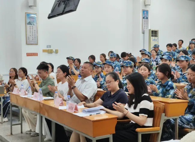 接着,由2024级新生张唯佳同学代表全体参训新生发言。她先对教官们严格而耐心的指导、老师们和学长学姐们的支持与关心表达了感谢。随后,她分享了对于14天军训历程的感悟,包括意志的锻炼与团队的协作。同时,她也表达了对今后大学生活的期许,承诺将把在军训期间培养的精神和掌握的技能运用到今后的学习和生活中,并呼吁全体新生将军训精神延续下去。