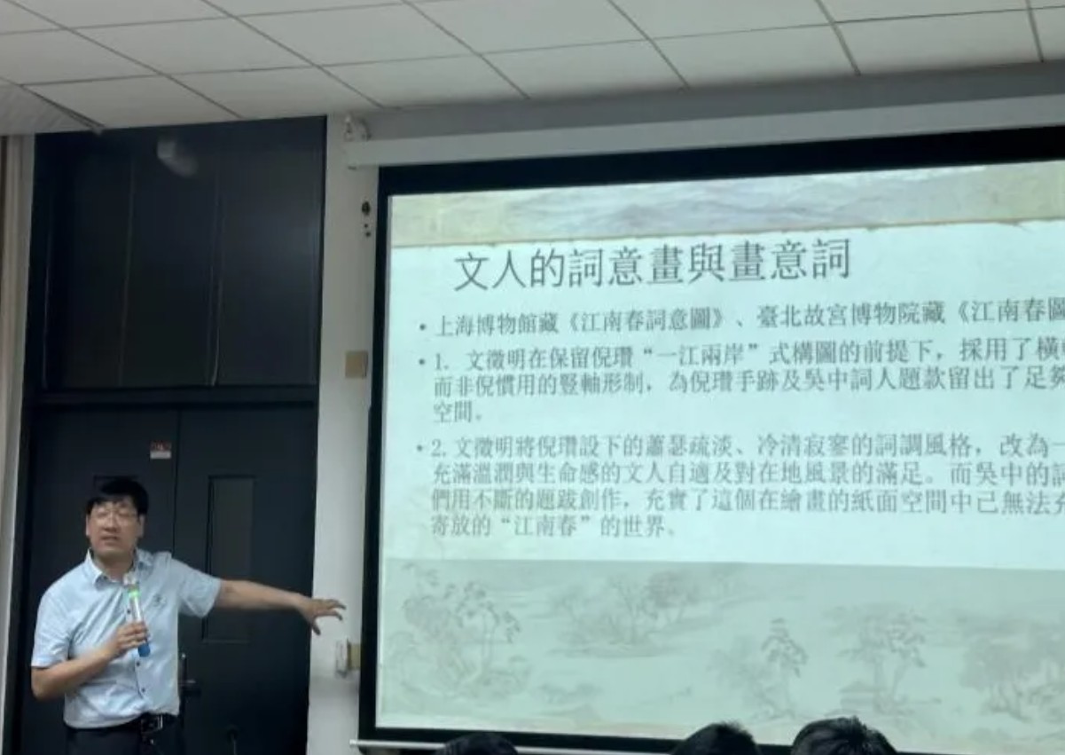 7月18日晚,“再论词与画的换位问题一一基于宋元明实物图像的词史考察”学术讲座于林秀华文科楼二楼会议室开展。本次讲座由北京大学中文系叶晔教授主讲,3044永利集团院长蒋晓光教授主持,苗民、黄立一、黄燕平、王玮、张祐睿等古代文学教研室老师出席本次讲座,3044永利集团部分研究生与本科生参加。