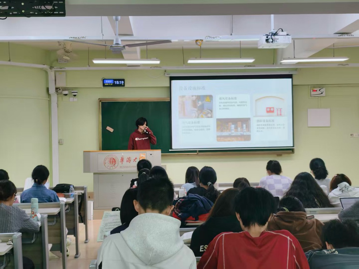 本次培训内容紧扣实验室安全核心需求,涵盖国家及地方高校实验室安全政策法规、学校实验室管理规章制度、通识性安全规范及专项专业安全知识等关键模块。培训过程中,主讲人采用"政策解读+案例剖析"的方式,结合典型实验室安全事故案例,深入浅出地讲解了实验操作中的常见安全隐患、风险防控要点及突发情况应急处理流程,让同学们直观感受到实验室安全的重要性,进一步筑牢"安全第一,预防为主"的责任理念。培训现场,同学们专注聆听、认真记录,主动参与互动答疑环节,就实验过程中可能遇到的安全问题积极交流探讨,形成了浓厚的学习氛围。大家纷纷表示,此次培训内容实用、针对性强,不仅系统掌握了实验室安全操作技能和应急处置方法,更强化了自我保护意识,为今后参与各类实验活动筑牢了安全根基。