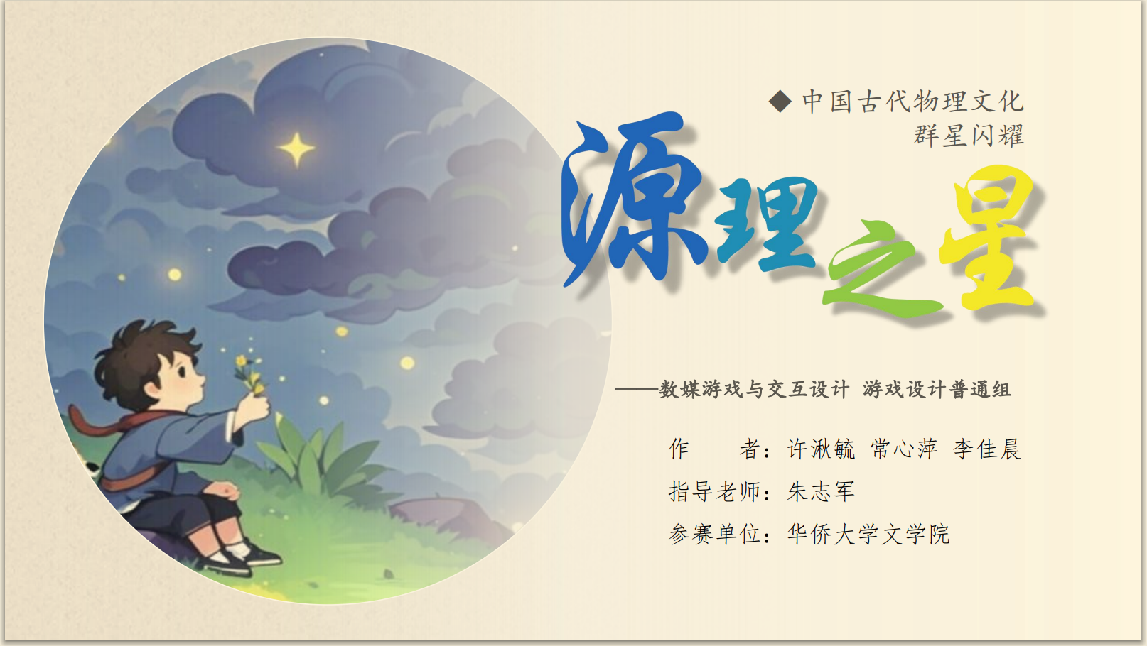 由许湫毓、常心萍、李佳晨团队开发的RPG游戏作品《源理之星》,是一款面向儿童的科普性质游戏。作品以"梦境穿越"为叙事主线,构建了沉浸式科普场景,玩家将扮演一位因学习中国古代物理知识,而在梦境中穿越到华夏文明濒临黯淡的时空探索者,通过沉浸式角色扮演,与墨子、张衡等古代物理先贤对话,完成"墨子的魔法杠杆"、“苏颂的水运仪象台”、“万户的风筝实验"和 “墨子与凹凸镜”等十几个关卡任务,在虚拟物理场景中收集“源理之星”,复兴华夏科技文明。